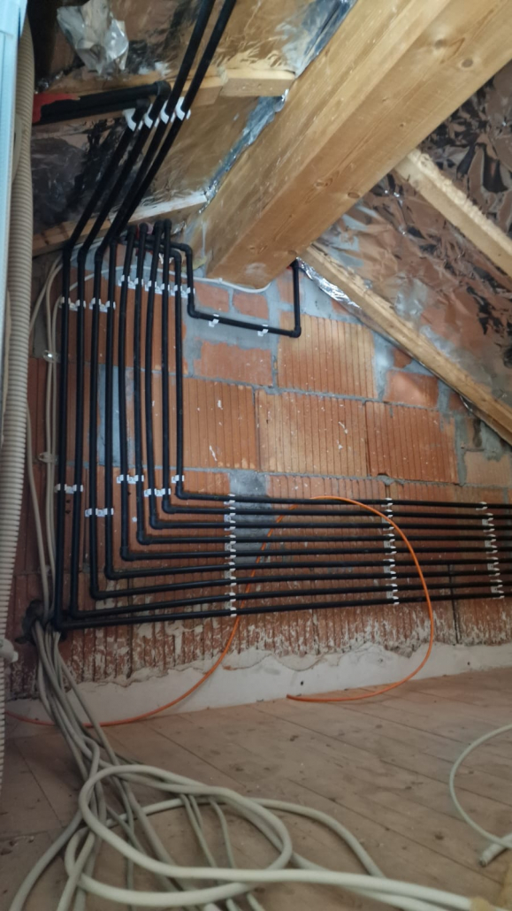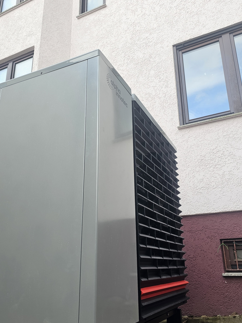 Bei diesem Bauvorhaben haben wir eine alpha innotec Hybrox 16 Luft-Wasser-Wärmepumpe installiert und mit einem Multifunktions- sowie einem Trennpufferspeicher kombiniert. Diese Systemlösung sorgt dafür, dass die erzeugte Energie optimal verteilt und gespeichert wird und jederzeit zuverlässig zur Verfügung steht.