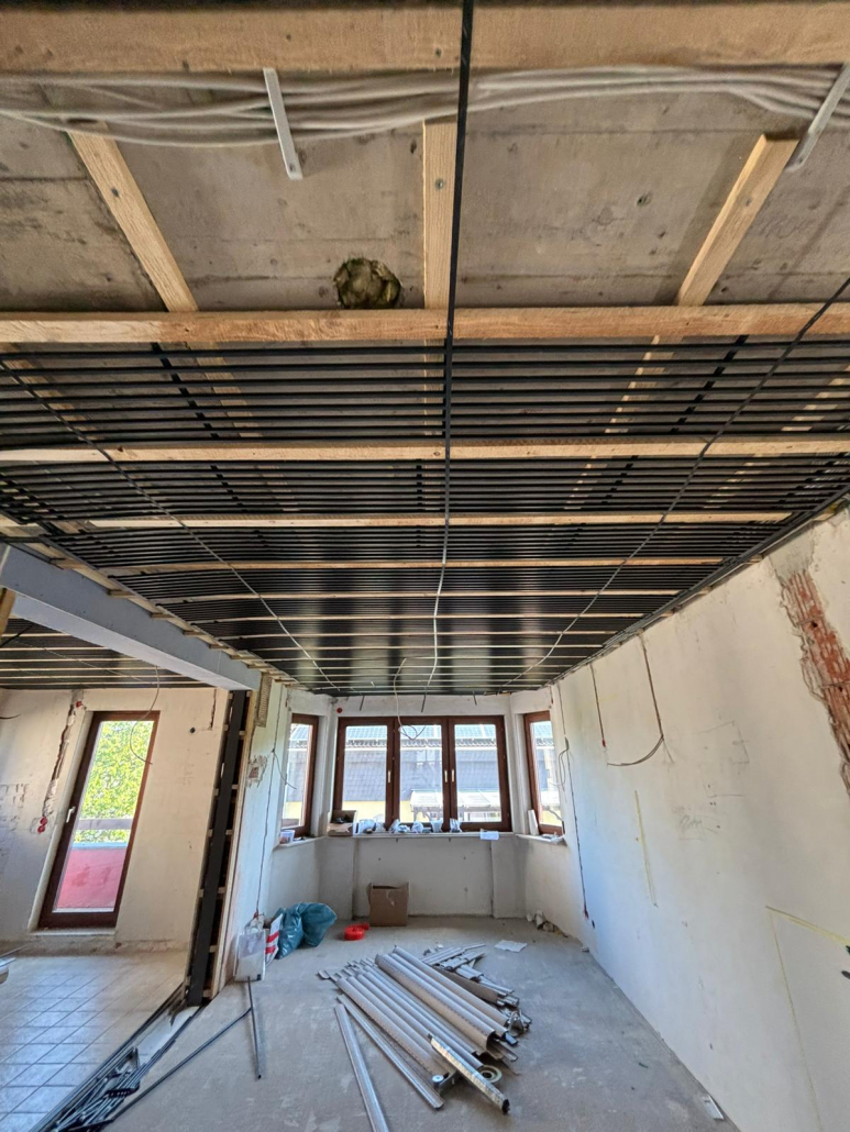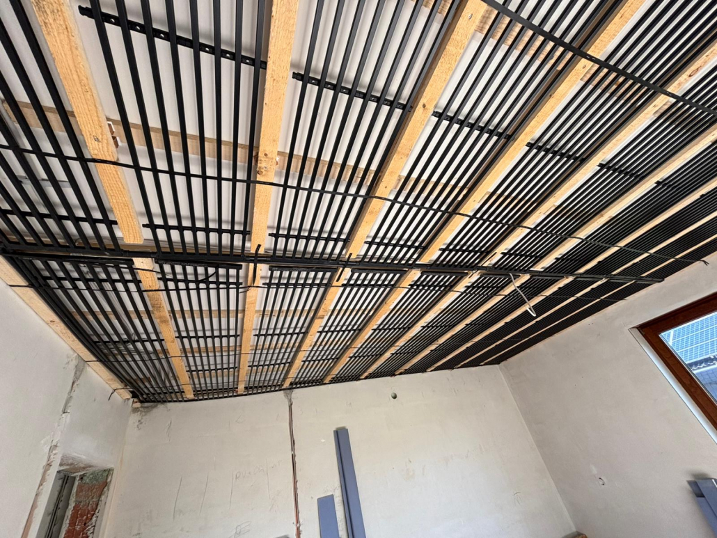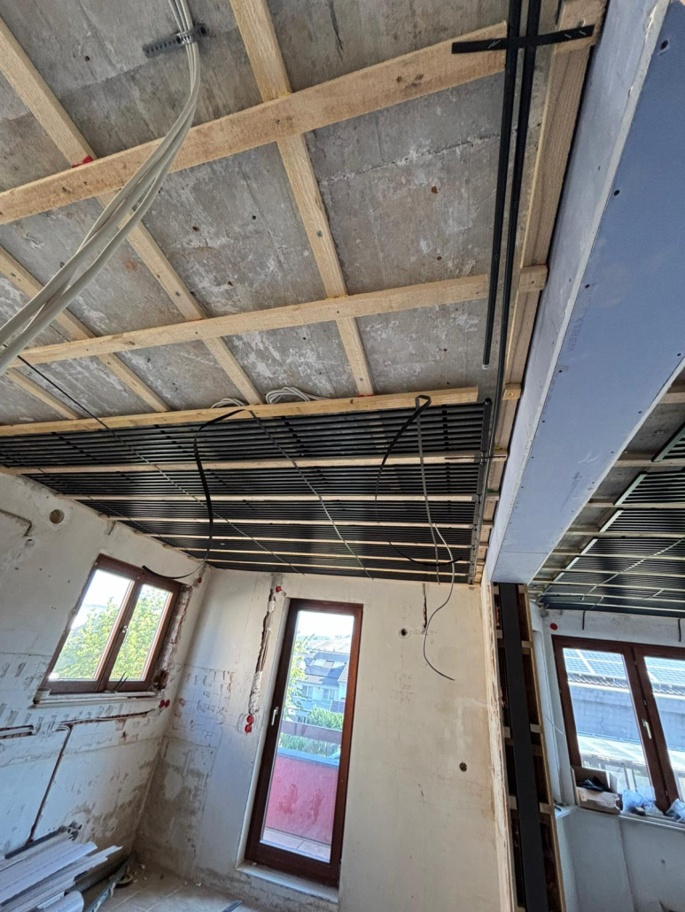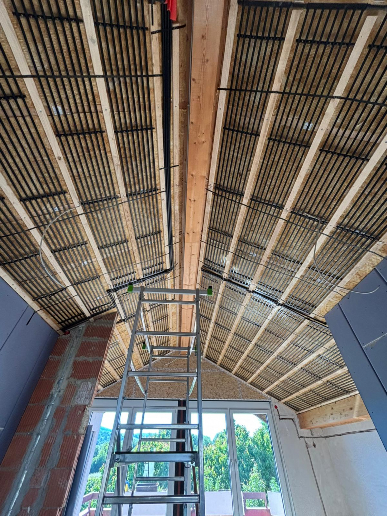 Ein besonderes Highlight ist die zusätzlich eingebaute Deckenheizung, die nicht nur im Winter für eine gleichmäßige und angenehme Wärme sorgt, sondern im Sommer auch zur sanften Kühlung genutzt werden kann. Damit entsteht ein ganzjährig behagliches Raumklima ohne den Einsatz klassischer Klimageräte.