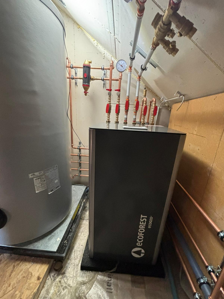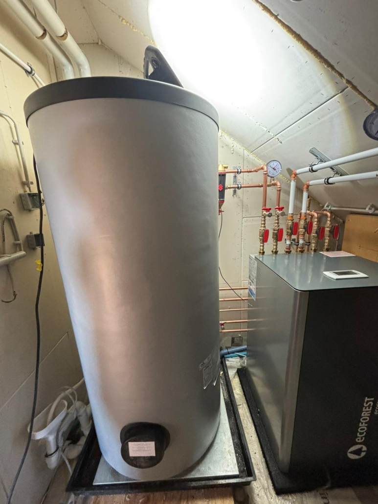 Ergänzt wurde die Anlage durch einen großen Trinkwasserspeicher, der jederzeit für ausreichend warmes Wasser sorgt und den Komfort für die Bewohner erheblich steigert. Durch die Kombination von effizienter Wärmeerzeugung und moderner Speichertechnik entsteht ein zukunftssicheres Heizsystem, das Energiekosten reduziert, die Umwelt entlastet und langfristig für ein behagliches Raumklima sorgt.